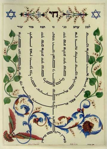 2/ psalm N°67 in Hebrew in the form of Menorah